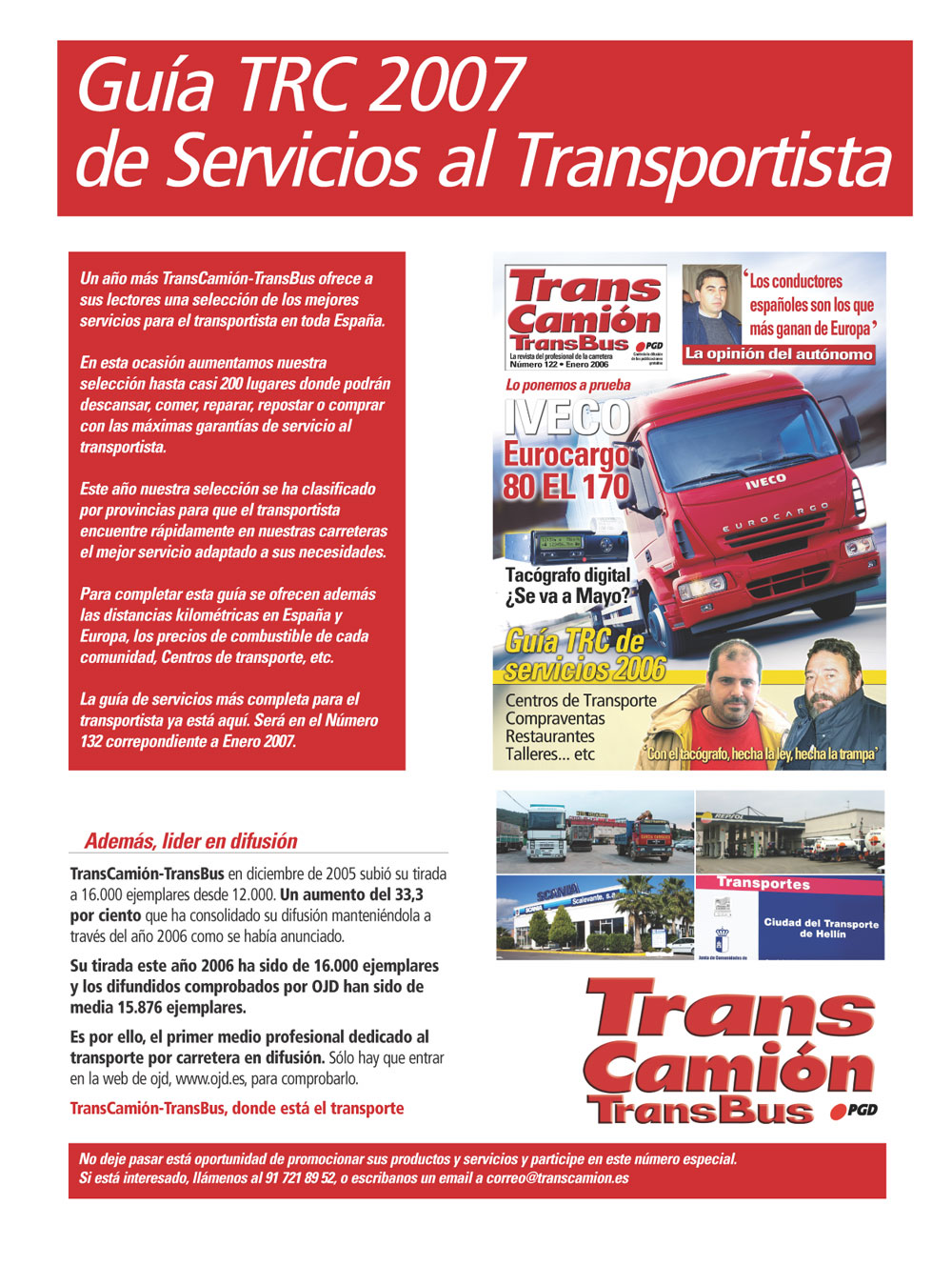 C/Ulises 108, 2» planta / 28043 Madrid / Tel: 91 721 89 52 / Fax: 91 721 90 21 / Email: correo@transcamion.es /