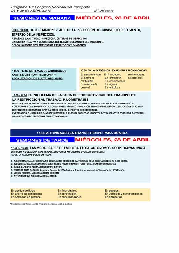 * El Grupo Logística y Transporte convoca, como cada año, una nueva edición del Congreso Nacional del Transporte y la Logística que se celebra los próximos 28 y 29 de abril de 2010 en la Institución Ferial de Alicante (IFA). El Gongreso llega a su Decimoctava Edición, consolidado como el evento referente en el transporte en España