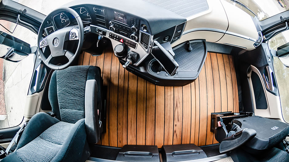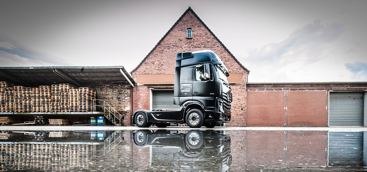 "Negro mate", no hay otro igual en Alemania, comenta Kai-Uwe Schelt. En la primavera de 2016, el director de ventas de vehículos industriales de Beresa OWL en Bielefeld mandó construir con el Black Star el primer modelo de una serie limitada. "Nos decidimos por la pintura especial para dotar al vehículo de una elegancia singular", explica Schelt. "La idea original era poner un suelo de parqué en la cabina, pero, debido a las variaciones de temperatura y a la posible formación de agua de condensación, habría sido complicado". La solución: madera de teca como la empleada en la construcción naval, confeccionada en tres piezas exactas por un comerciante de maderas y colocada sencillamente como una alfombra. El elegante modelo especial se completa con las llantas de aluminio pulido Dura Bright. En palabras de Schelt: "Además de bonitas, también son fáciles de mantener". Y, para que no falte carbón en la caldera, el motor desarrolla una potencia de 389 kW (530 CV). Quién puede resistirse ante un modelo así.