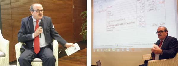 Hizo un repaso de la Ecotasa, señalando los costes que se aplicarán a partir de octubre en los distintos tramos de vías francesas. Vatservices es proveedor del servicio de pago de la Ecotasa.
